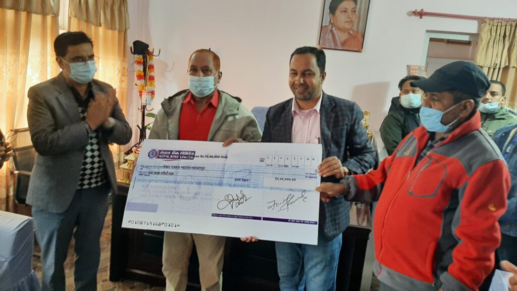 उपमहानगरपालिकाका मेयर हरिबहादुर महतले दश लाख रुपैयाँको चेक हस्तान्तरण गरेका हुन् ।
