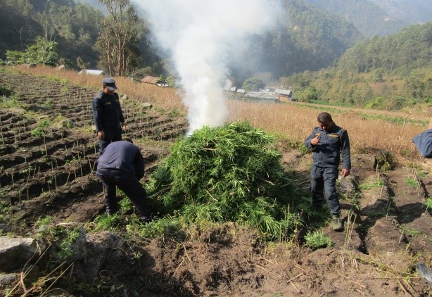 जिल्ला प्रहरी कार्यालयका प्रहरी निरीक्षक अविनाश अधिकारी, इलाका प्रहरी कार्यालय मनहरीबाट प्रहरी निरिक्षक बिनोद श्रेष्ठ र इलाका प्रहरी कार्यालय पालुङका प्रहरी निरीक्षक विकास कुमार तामाङको कमाण्डमा संयुक्त रुपमा खटिएको ८५ जना प्रहरी टोलीले गाँजा फडानी गरी नष्ट गरेको हो