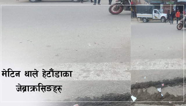 हेटौंडा/बागमति प्रदेशको राजधानी हेटौंडाका सडकमा जेब्राक्रसिङहरु मेटिदै गएका छन् । जस कारणले गर्दा पैदल यात्रीहरुलाई बाटो काट्नको लागि समस्या परिरहेको छ । हेटौंडाको मुख्य सडक कान्तिराजपथमा जेब्राक्रसिङ मेटिएको कारण त्यँहा बाटो काट्ने पैदल यात्रीहरु झुकिरहेका छन् । सवारीहरु तिब्रगतिमा चल्ने भएकोले बाटो काटन्को लागि धेरै समय रोकिन समेत बाध्य भएका छन् ।