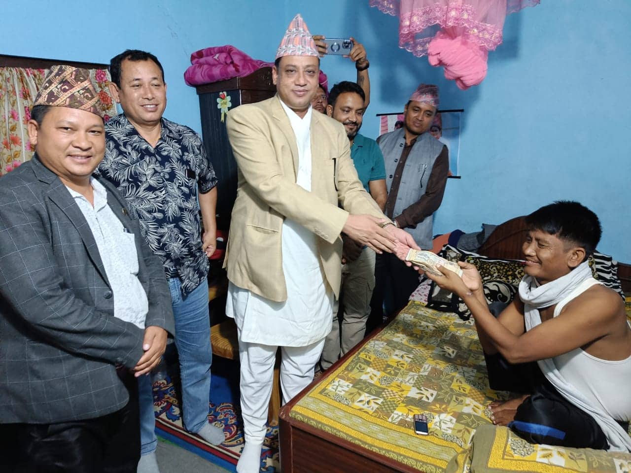हेटौंडा । नेपाली कांग्रेस बागमती प्रदेश संसदीय दल र दलका नेता ईन्द्रबहादुर बानियाँले मिर्गौला रोगी कांग्रेस नेता रामकृष्ण प्रजालाई एक लाख रूपैयाँ सहयोग गरेका छन् । दुबै मिर्गौला फेल भएर उपचार गराइरहेका पूर्व जिल्ला सदस्य प्रजाको उपचारका लागि संसदीय दल र दलका नेता बानियाँले आर्थिक सहयोग गरेका हुन् । उपचारमा सहजताका लागि संसदीय दलबाट ५० हजार र नेता बानियाँले गरेको ५० हजार गरि एक लाख रूपैयाँ सहयोग प्रजाको घरमा पुगेर हस्तान्तरण गरिएको छ ।कांग्रेस बागमती प्रदेश सभापति एवं दलका नेता ईन्द्रबहादुर बानियाँले रकम हस्तान्तरण गरेका छन् । नेता बानियाँले प्रजाको स्वास्थ्य अवस्था र थप उपचारबारे जानकारी लिंदै आवश्यक सहयोगको प्रतिबद्धता व्यक्त गरेका छन् ।
