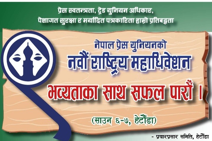 हेटौंडा । यही साउन ६ र ७ गते हेटौंडामा हुने नेपाल प्रेस युनियनको राष्ट्रिय महाधिवेशनको तयारी करिब अन्तिम चरणमा पुगेको छ । महाधिवेशनको लागि युनियनका केन्द्रीय पदाधिकारीसहितका नेताहरु हेटौंडा आइपुगेका छन् । स्थानीय आयोजक समिति मकवानपुरले महाधिवेशनको तयारी अन्तिम चरणमा पुगेको बताएको छ । मंगलबार बिहान पनि स्थानीय आयोजक समितिले हेटौंडामा छलफल कार्यक्रमको आयोजना गरेको थियो । छलफलका क्रममा स्थानीय आयोजक नेपाल प्रेस युनियन मकवानपुरका अध्यक्ष पोष्टराज अधिकारी कुमारले महाधिवेशनको तयारीका बिषयमा भइरहेको कामको जानकारी गराएका थिए ।