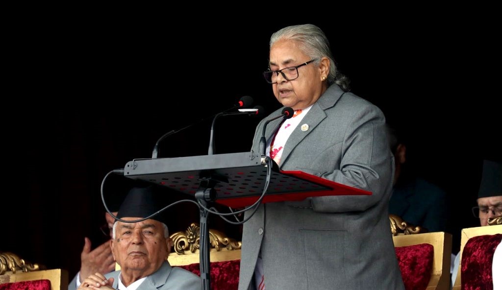 संविधान दिवसका अवसरमा शुक्रबार सैनिक मञ्च टुँडिखेलमा आयोजित विशेष समारोहलाई सम्बोधन गर्दै विभिन्न आन्दोलनको मर्मलाई आत्मसाथ गर्दै वर्तमान सरकारले जनआकांक्षा अनुसार दृढ संकल्पका साथ काम गर्ने बताएकी छन् ।