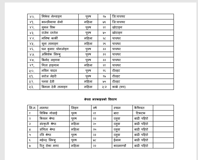 हेटौंडा।शुक्रवार र शनिवारको ठूलो वर्षापछिको विपद्जन्य घटनामा परी ज्यान गुमाउनेको संख्या ५२ पुगेको छ । अरू सात जना बेपत्ता भएका प्रहरीले जनाएको छ ।
